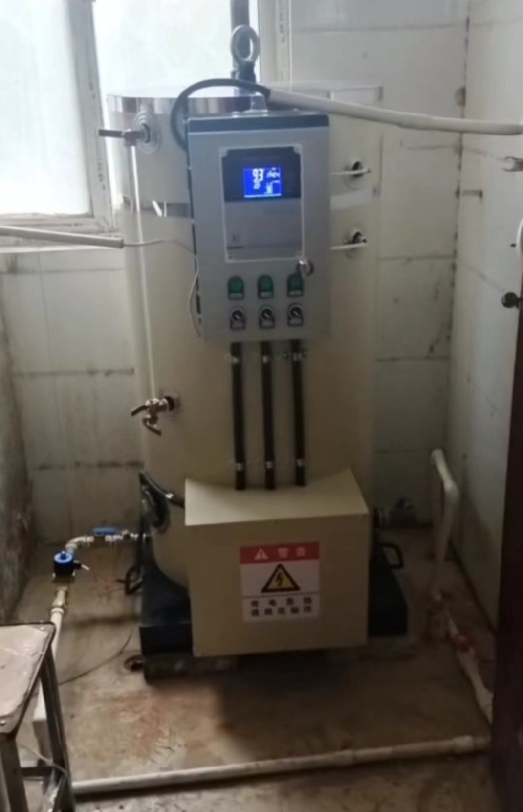 該校使用的是地下井水,水質較硬,易結水垢,舊的電開水鍋爐里面水垢幾乎結滿,學校后勤人員知道水垢嚴重,幾經除垢作業,但卻效果甚微。