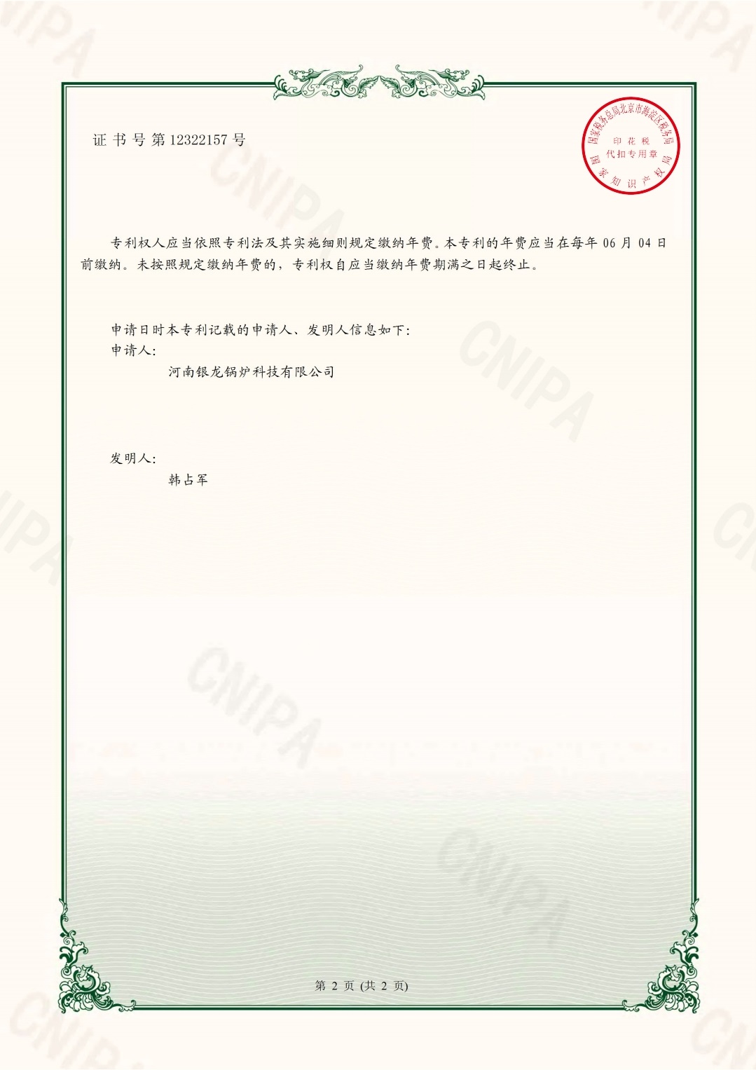 分艙式電開水鍋爐使用新型專利證書